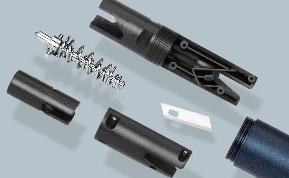 Onze veiligheidshamer werkt niet op brute kracht, maar op slim design. Dankzij het ingebouwde veermechanisme levert hij met één druk een enorme slagkracht zelfs zonder armspieren. En omdat elke seconde telt, is hij uitgerust met een 2-in-1 systeem: breek glas én snijd gordels in één beweging. Snel, eenvoudig en levensreddend.